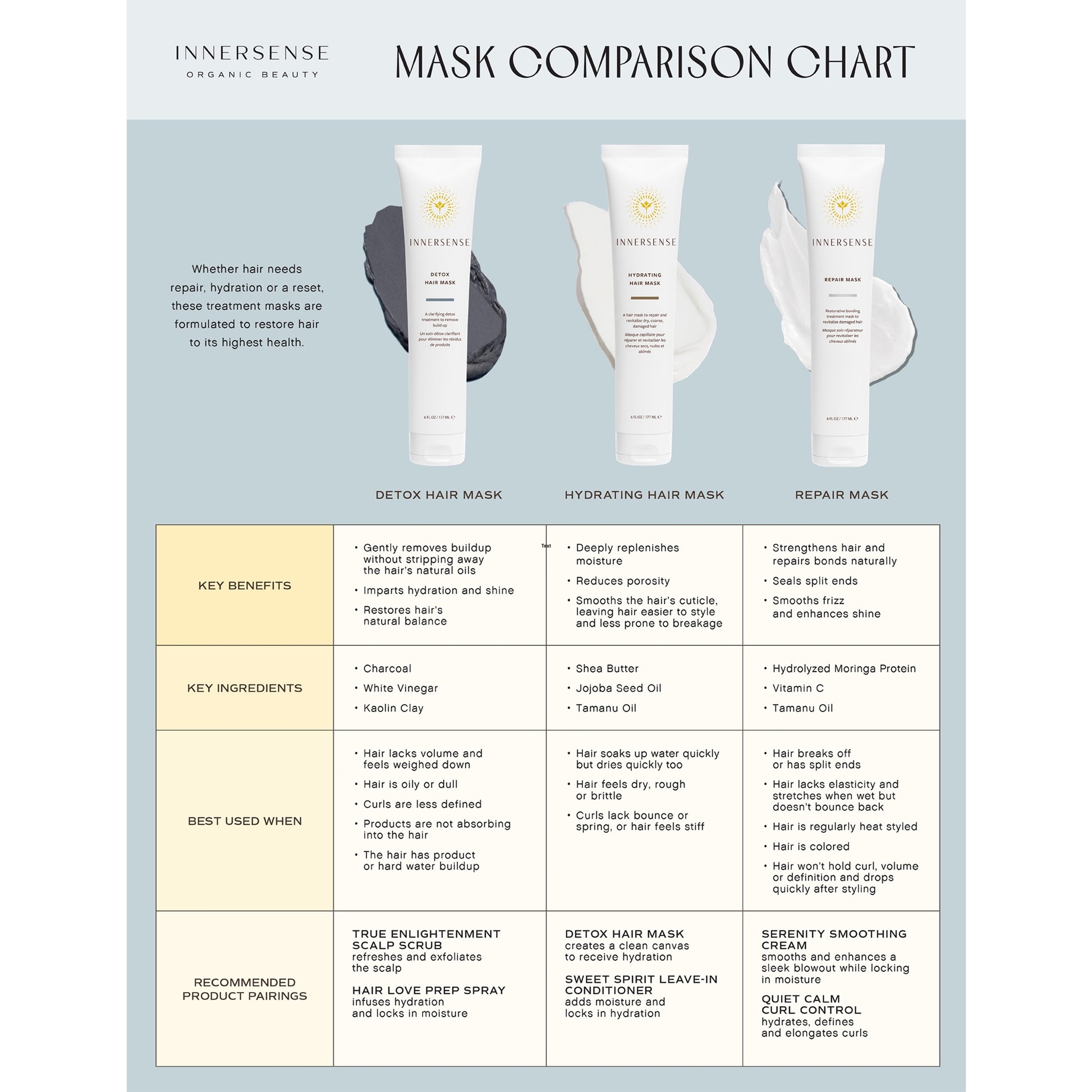 Pre-cleanse with the Innersense Organic Beauty Hairbath of your choice. Remove excess moisture, apply mid-length to ends. Feel the healing presence for 5-10 minutes or longer if needed. Rinse thoroughly.